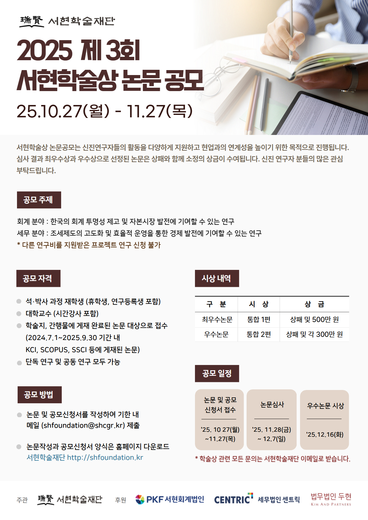 2025 서현학술상 논문 공모를 안내 드립니다.